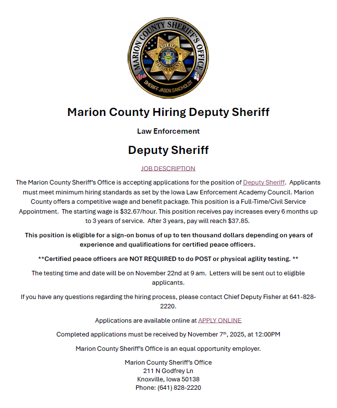 Marion County Hiring Deputy Sheriff