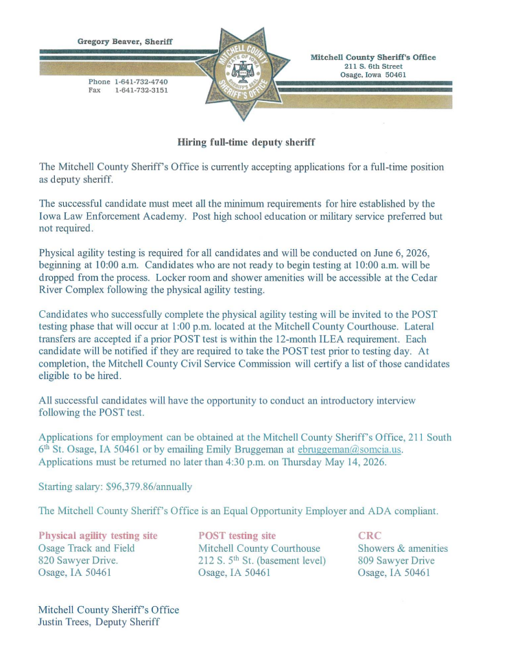 Mitchell County Hiring Deputy Sheriff