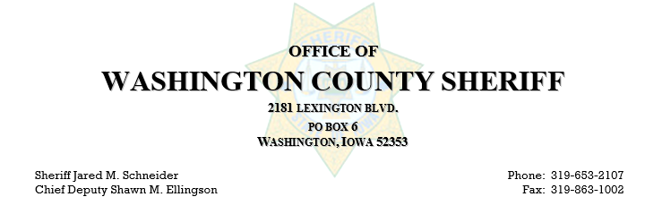 Starting wages: Vacation is earned at a rate of two weeks per year starting out, plus new hires are given 40 hours vacation after 30 days of employment. Patrol Deputies work 12-hour shift. Friday, Saturday, Sundays off every other week. Washington County contracts with seven communities so typical schedules have multiple deputies on duty. IPERS Protection Occupation Class applicants can take advantage of the recently passed IPERS Bill which went into effect 7-1-24 to improve the Iowa Sheriff’s and Deputies Protection Occupation Class to retire at 80% and an annual COLA of 1.5% with 30 years of service and being 50 years old or older. Contact IPERS to check on your status and opportunity. Washington County does offer opportunities for lateral transfers. Depending on years of experience, Iowa ILEA Certified candidates can begin at up to 7 years credit for purposes of pay and vacation when hired. Washington County Sheriff’s Office can provide a signing bonus and/or reimbursement of a police reimbursement agreement as the Sheriff deems appropriate. Iowa certified candidates are not required to perform physically agility or written POST testing to be considered. Washington County does not discriminate on the basis of race, creed, sex, gender identity, sexual orientation, color, national origin, religion, age or disability in employment or the provision of services. Veterans will be given statutory preference as provided by the State Code of Iowa section 35C. All applications should be turned into the Washington County Sheriff’s Office immediately to be considered in the current testing process. The next opportunity for applicants required to complete the Physical and Written testing will be on November 8th, 2025. Only applications received before November 4th, 2025, will be eligible for the next testing date. You will be notified of additional information when needed.